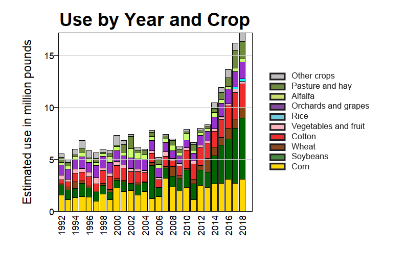 US government data shows that the amount of paraquat used in the United States has more than tripled between 1992 and 2018.