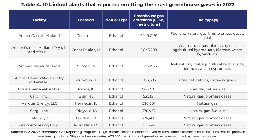 The ADM plant in Illinois, one of the largest biofuels facilities in the country, was the industry’s biggest polluter in 2022, releasing 4 million metric tons of greenhouse gases and around 3 million pounds of hazardous air pollutants.