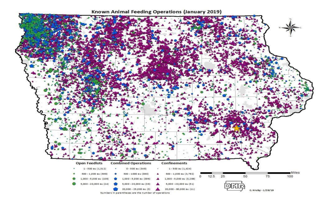 A particular point of concern when it comes to water contamination is the abundance of large concentrated animal feeding operations (CAFOs) across the state that regularly generate large quantities of manure, and related agricultural businesses such as slaughterhouses.