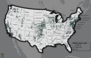 The water systems with the highest and most frequent nitrate levels were in heavy agricultural states. California, Pennsylvania, Washington, Kansas, North Carolina, New York, Nebraska, Texas, Arizona and Wisconsin accounted for 60% of all water systems with elevated nitrate.