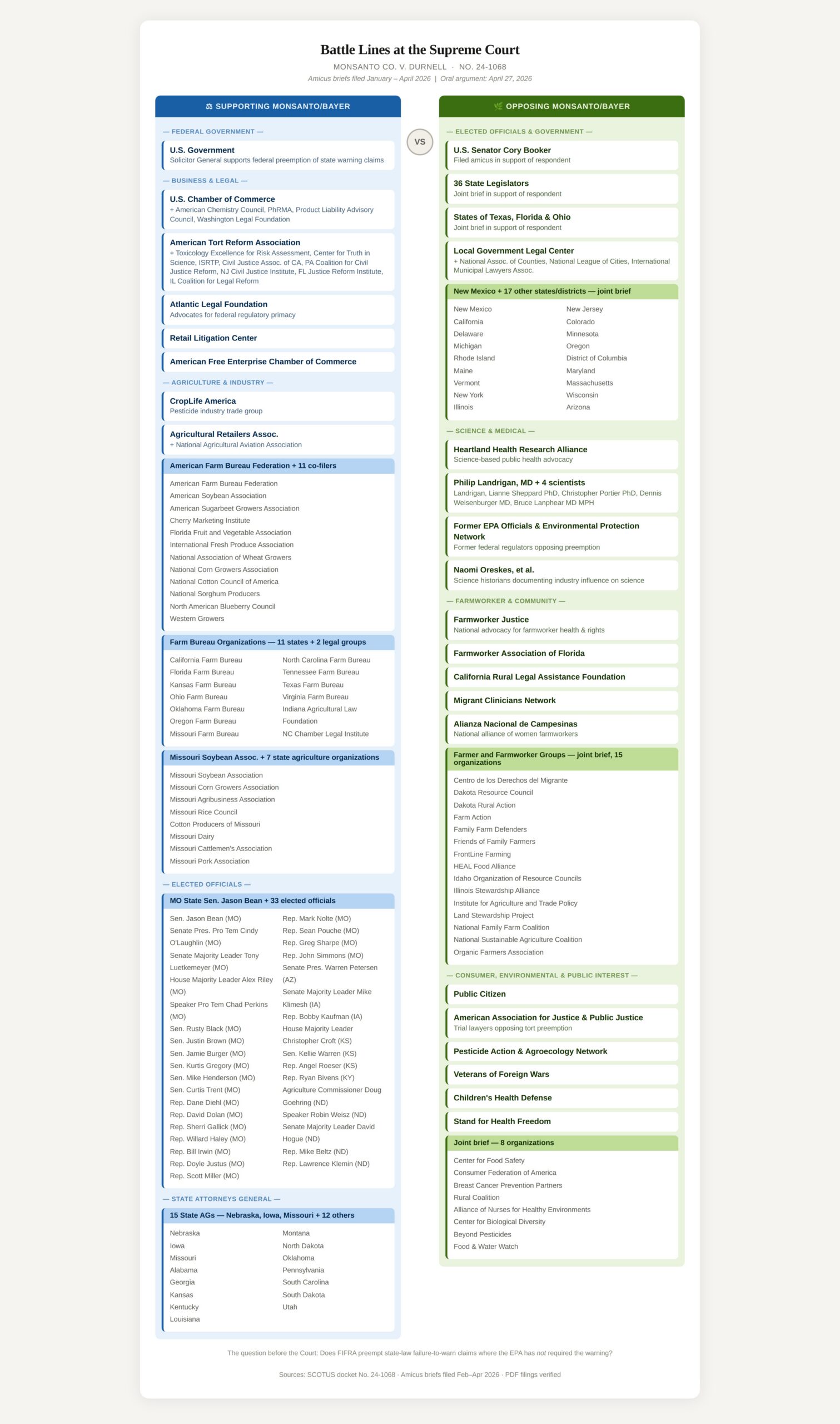 Supreme Court justices weigh Monsanto bid to block warning lawsuits